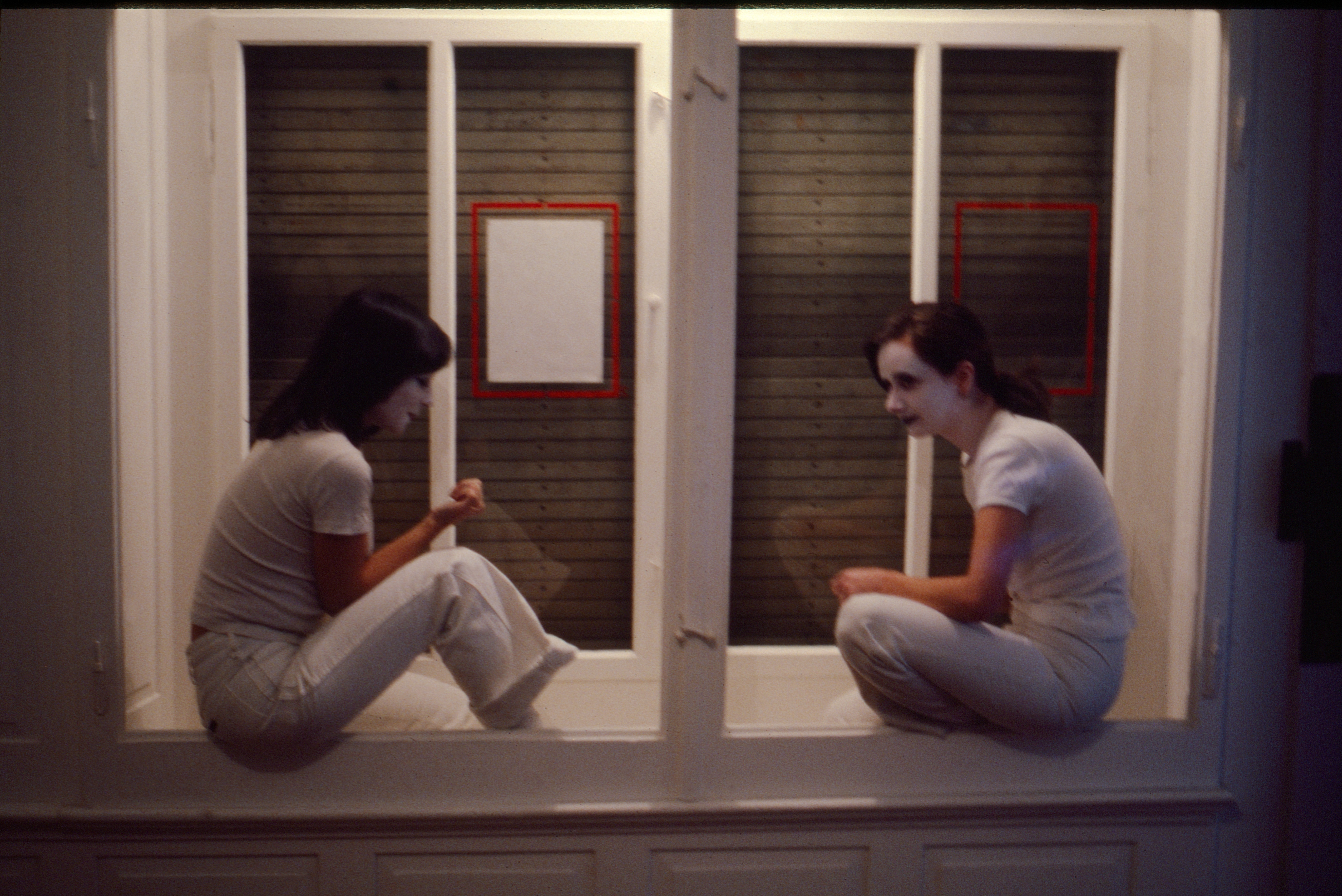 Gypsy Anzati und Gitta Gsell, SHOWROOMDUMMIES, Performance im Aufführungsladen 19.11.1977 Foto: Peter Trachsel. Archiv Peter Trachsel, Staatsarchiv Graubünden