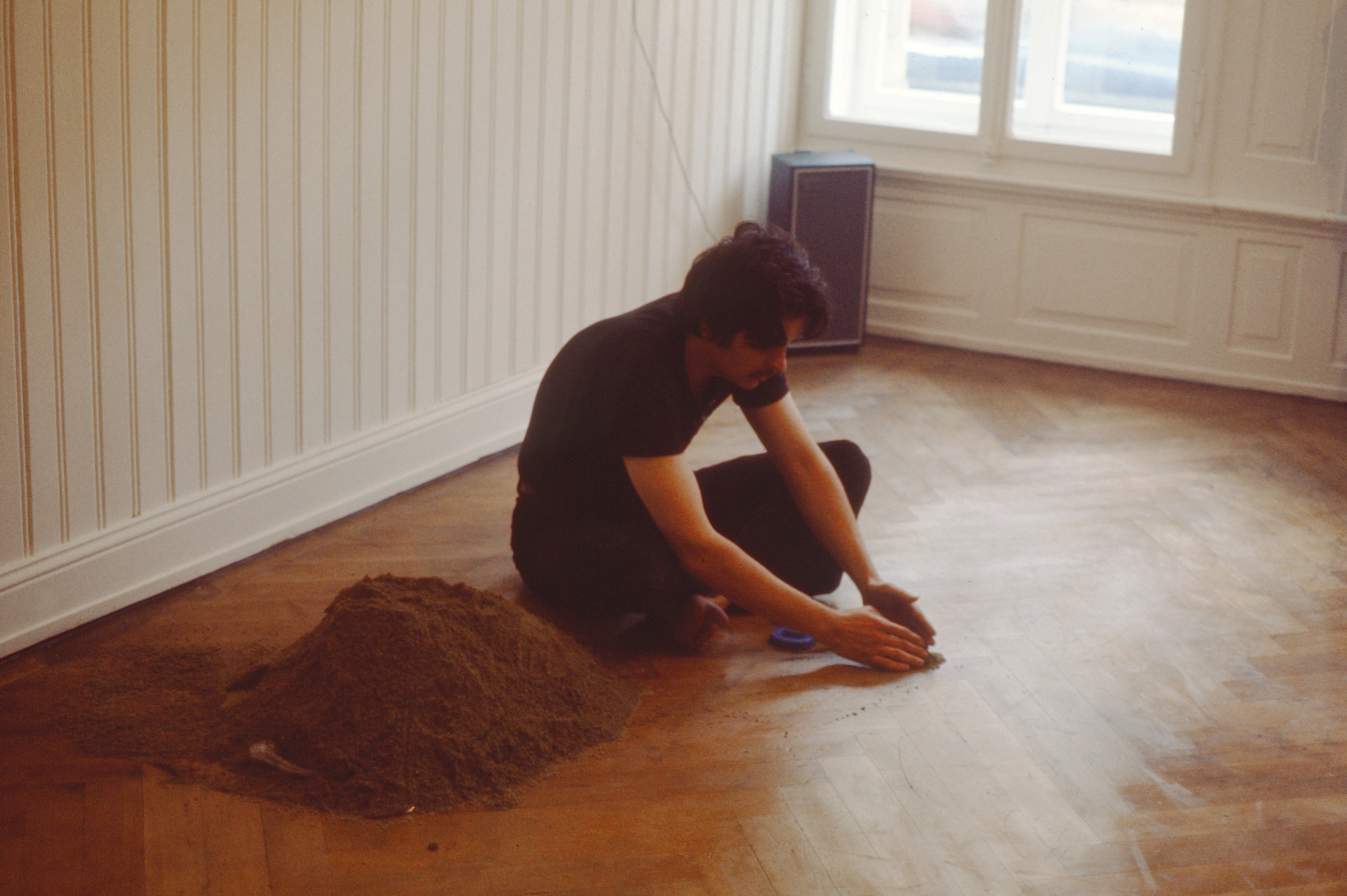 Alois Baumberger, R D (erde), Performance im Aufführungsladen 1977/1978 Foto: von Peter Trachsel. Archiv Peter Trachsel, Staatsarchiv Graubünden