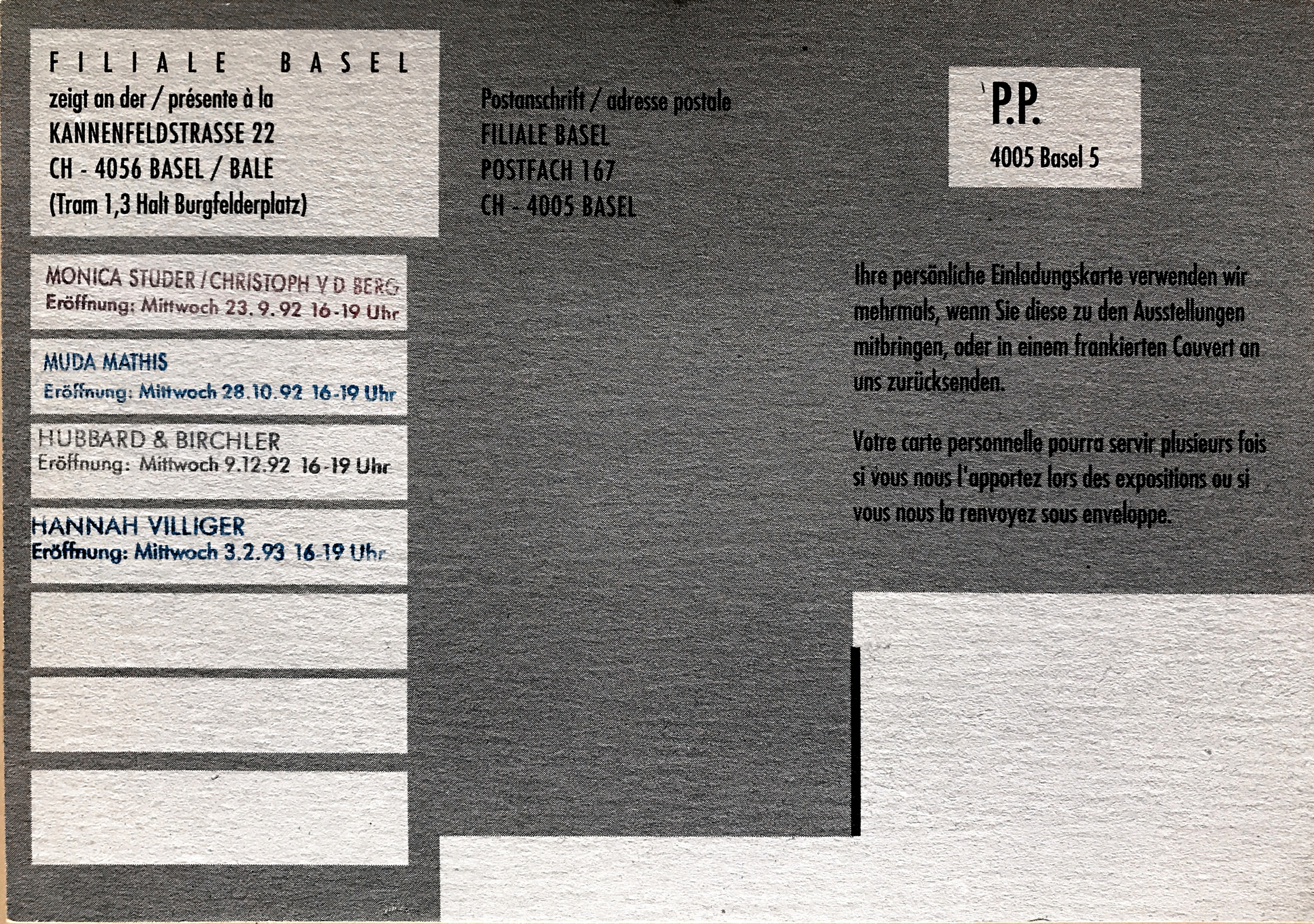 Flyer Ausstellung Silvia Bächli (Rückseite)